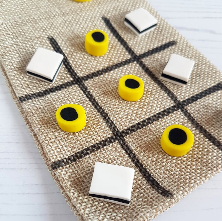 Using the same polymer clay as my jewellery, but creating flat back pieces, to use for the classic game of Tic Tac Toe, or Noughts and Crosses!