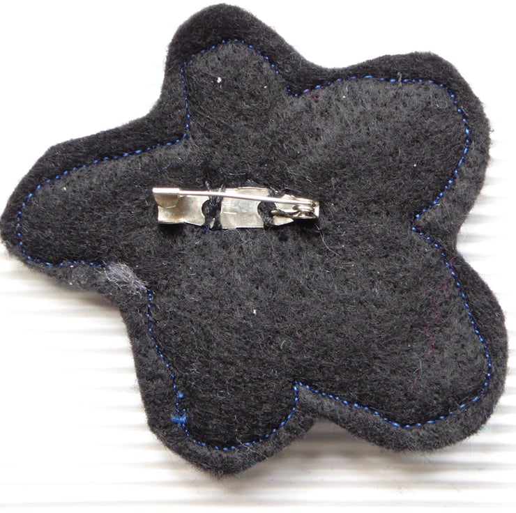 Brooch or lightweight scarf pin. Exciting wool roving colours are needle felted to form a firm base on coloured felt with a stitched on brooch pin. Edges secured with machine stitching. Decorated with machine and hand embroidery using a variety of silk and metallic threads also adding stitched beads to add sparkle.