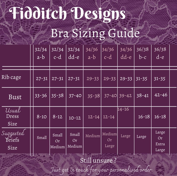 Bra sizes are from 32a to 38e.