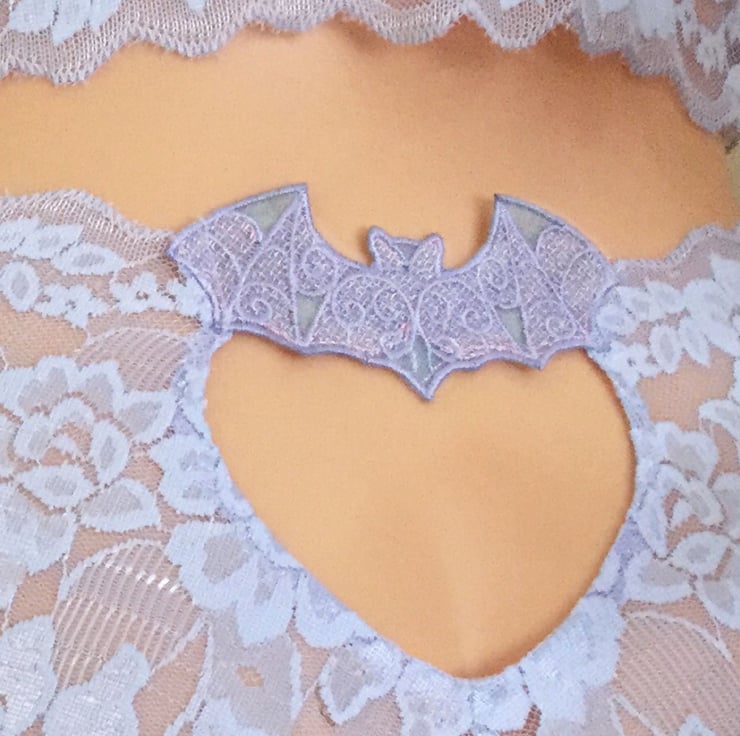 With a quirky embroidered detail of a cute little bat on the keyhole back.