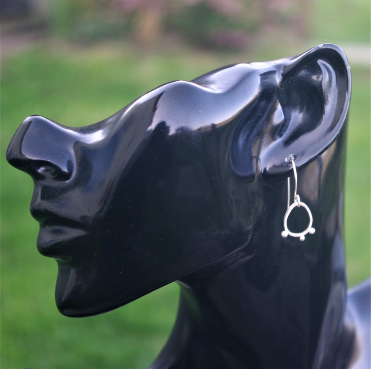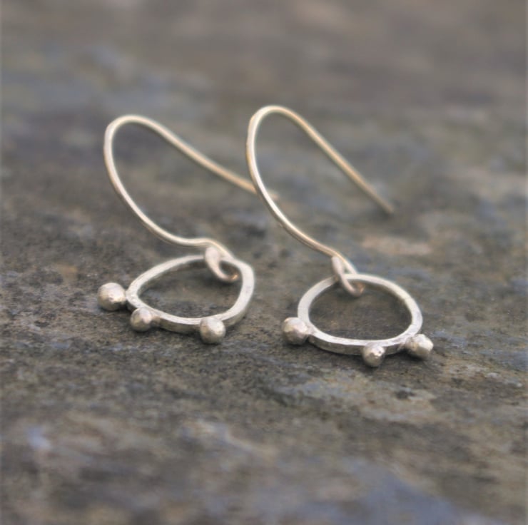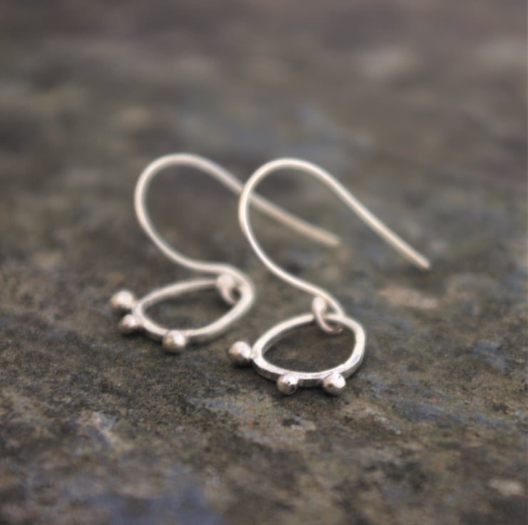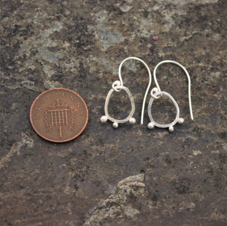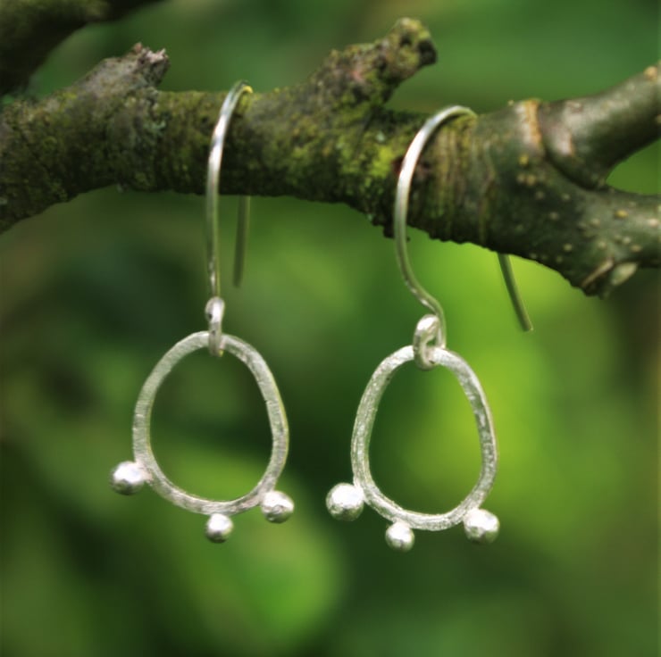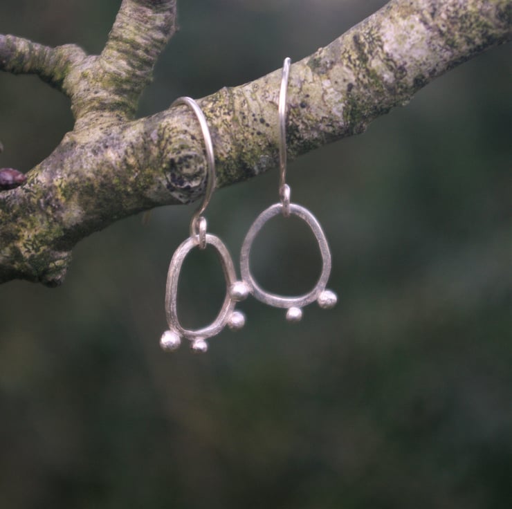 I have soldered eco square silver wire into a small, rough oval shape of length13mm/ half an inch, width 11mmm and added three silver 'seeds' clinging to outer edge at the bottom made from my left over bits of silver.