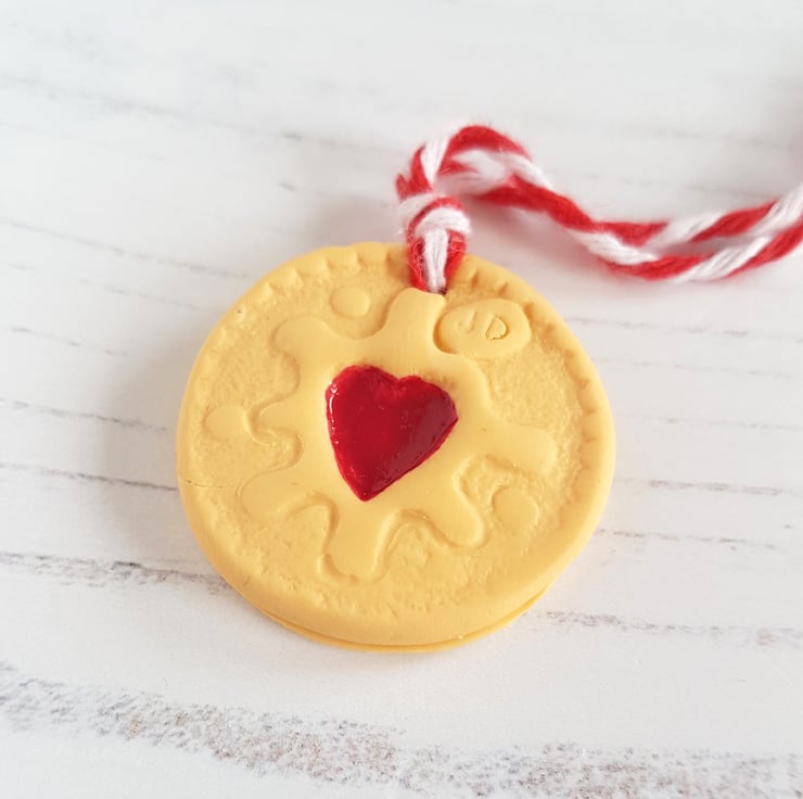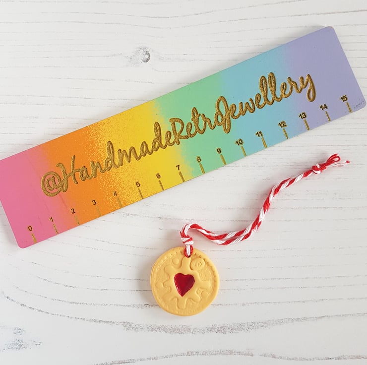 This is a cute little Jammy heart biscuit charm, carefully hand made from polymer clay, with a glossy jammy heart centre!