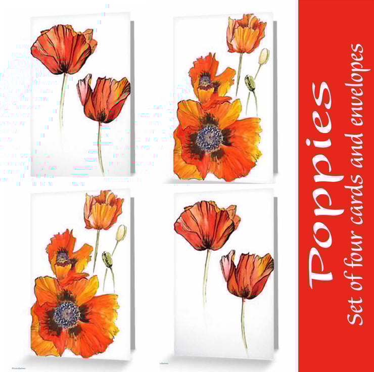 A set of four poppy cards / notelets reproduced with images from my original paintings.