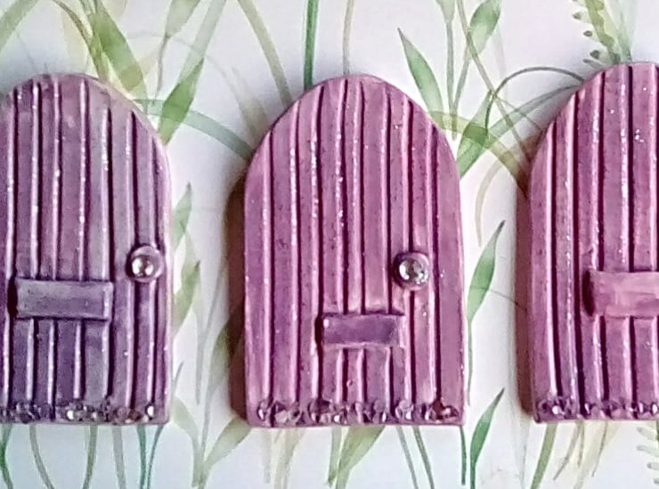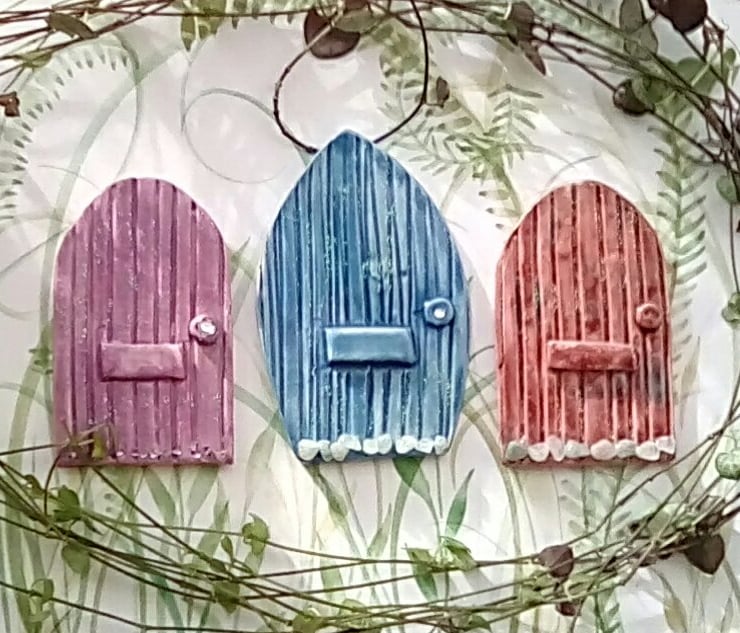 Each fairy door is unique, some have an added door handle or letterbox, they are decorated with different glazes, some having a crystallised or two tone colour. I've then added an extra bit of sparkle with some glitter, gems or semi precious stones.