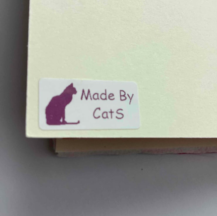 The back has a wee purple cat saying Made by Cats.