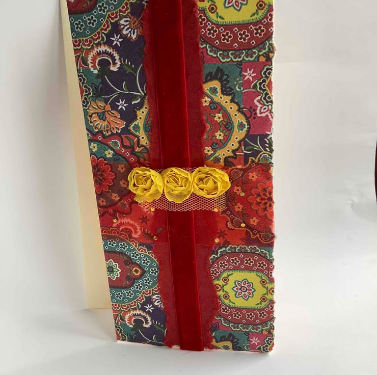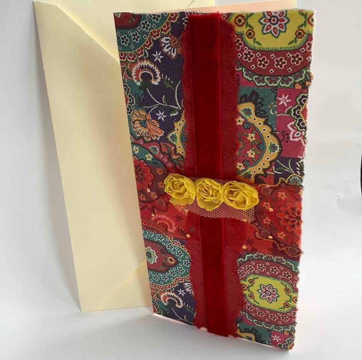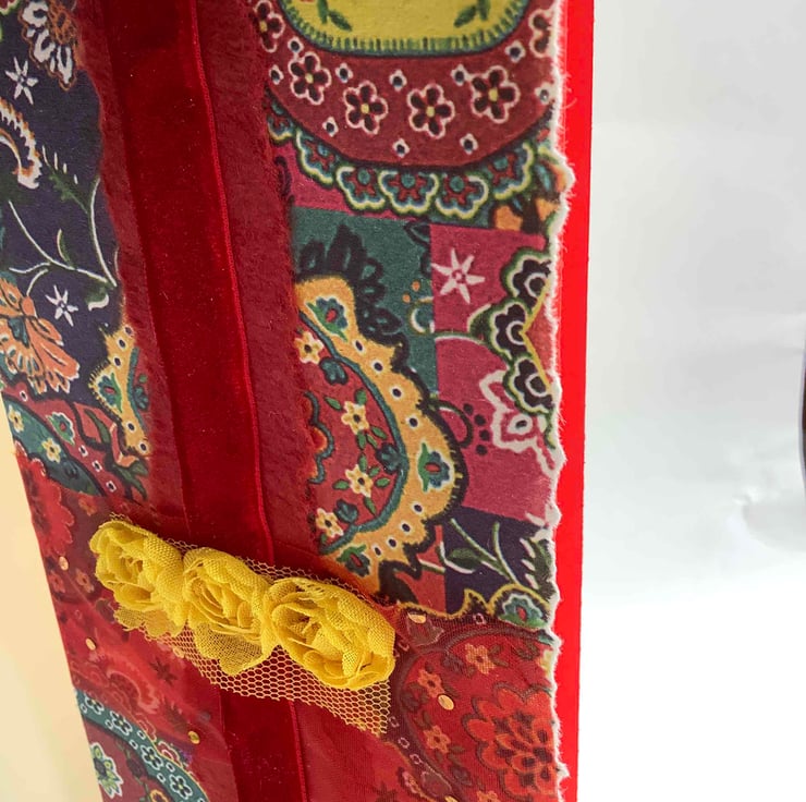 This gorgeous bold multi coloured paper has a few layers on top. A red strip appears down the centre(all my papers are ripped for softer effect )