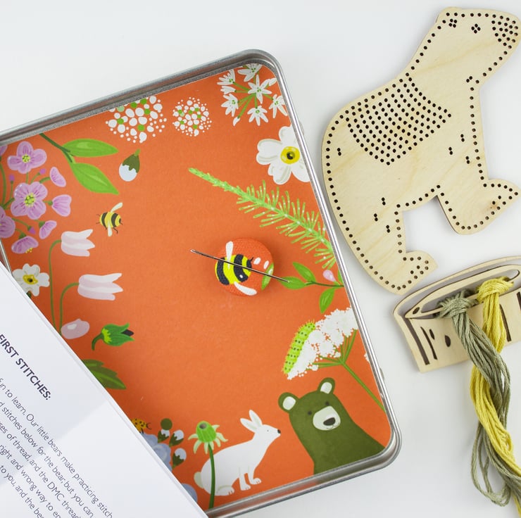 This tin comes with a magnetic needle minder made from our fabric. They hold everything from needles and pins to fabric scraps and thread/holders. They make beautiful keepsake gifts for friends, family and children. The illustrations are printed using high quality ink onto a textured quality stock and are bonded onto the tins. There is also an illustration of the wild flowers on the inside of the tin. The tins have a variety of other craft uses not just stitching, they can hold stationery, letters, jewellery, seeds, recipes etc.