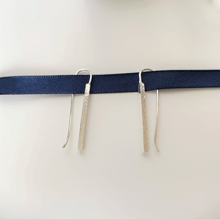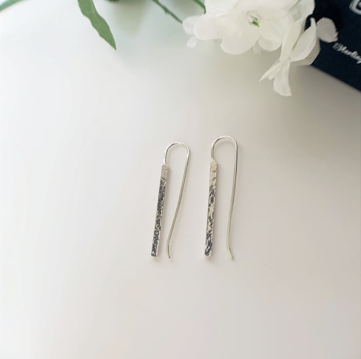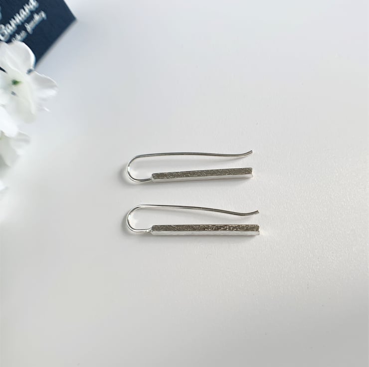 Handmade using square eco sterling silver wire, these beautiful bar drop earrings are approximately 3cm long and have been given a stunning hammered finished.
