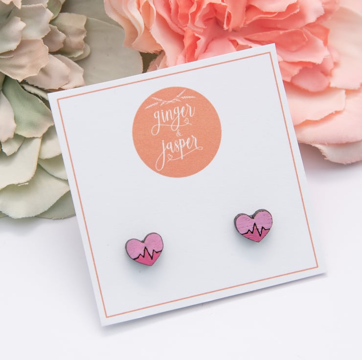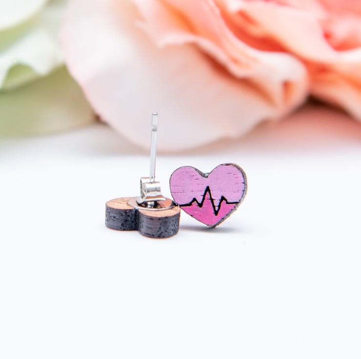 Featuring laser cut wooden hearts, these fun and quirky earrings are hand-painted in shades of pink and finished with a matt varnish to protect them. As these earrings are made to order, they can be painted in different colours if required. Please just leave a note when ordering if you would like to request a colour change.
