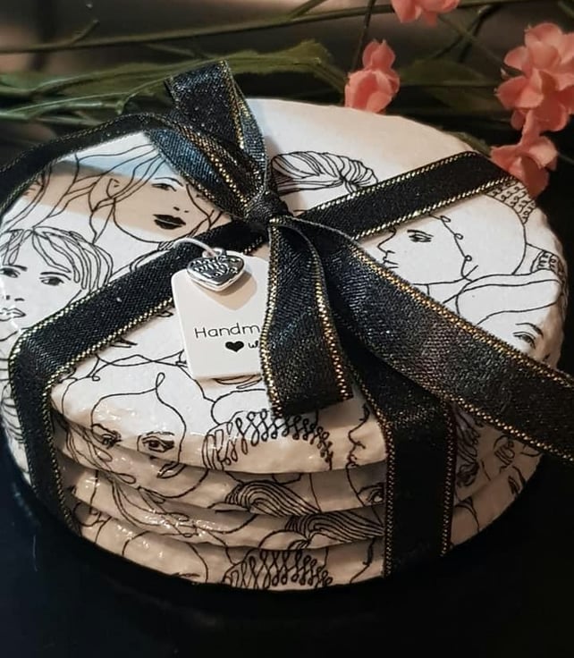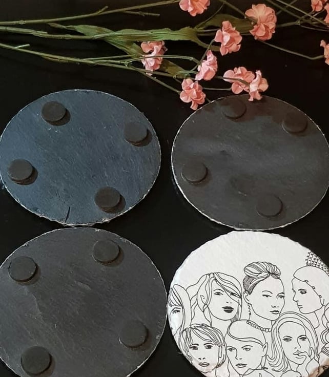 4 women slate coasters, these coasters are designed using the decoupage napkin technique. Finished with a high quality heavy duty varnish, which makes them suitable for all hot and cold drinks.