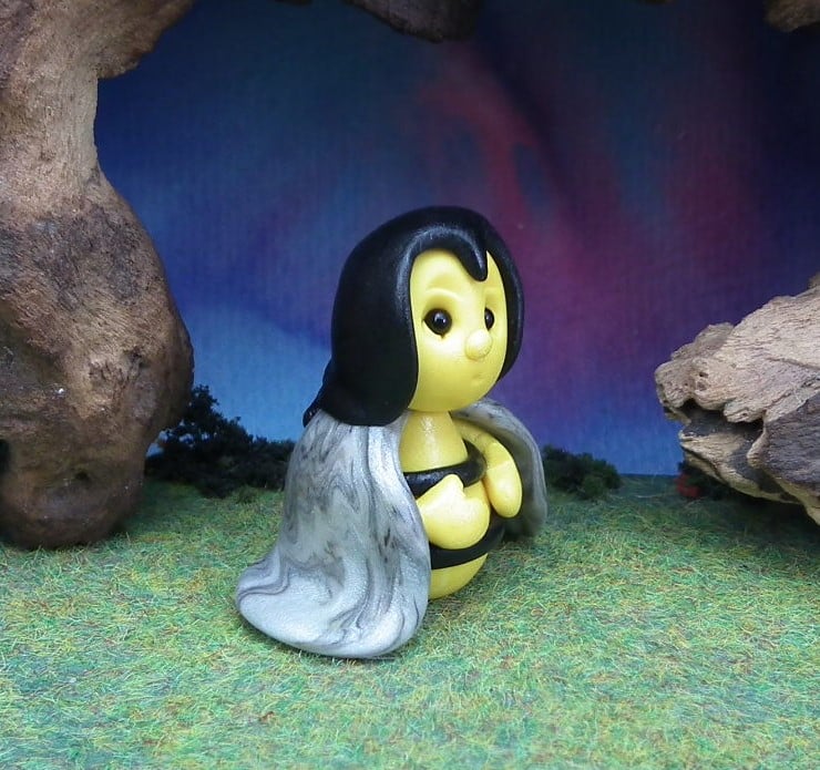 This is a 'one of a kind' creation; entirely handmade without the use of moulds here at my studio on the Sussex Coast. Modelled with Prosculpt polymers, painted with heat set paints before sealing with lacquer, Eno has sparkling black onyx eyes and is one and a half inches tall.