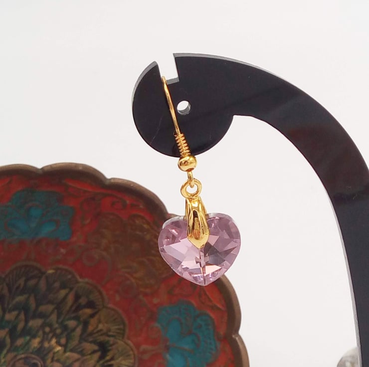 Pink Crystal Heart Earrings, Crystal Earrings, Pink Earrings, Gift for Her, Heart Jewellery, Birthday Gift, Anniversary Gift, Mother's Day Gift, Jewellery Gift for Her