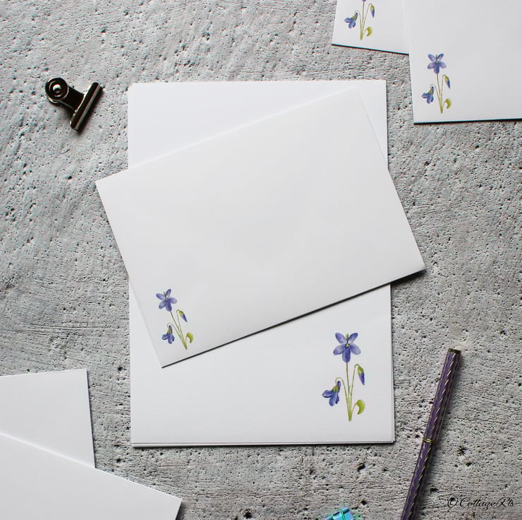 - 30 A5 sheets of laid letter writing paper featuring three different designs, including a Violet, Snowdrop and Yellow Rose. ( 10 sheets of each design)