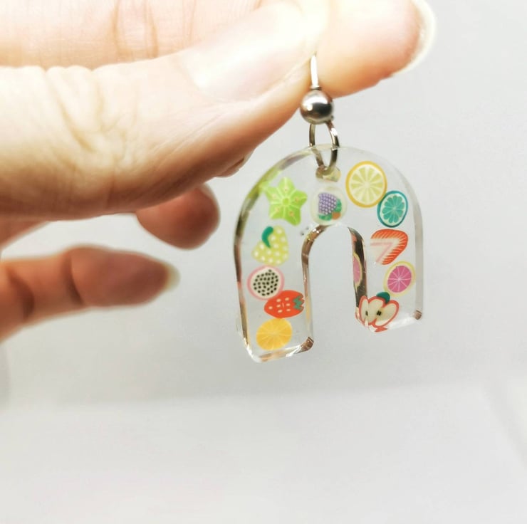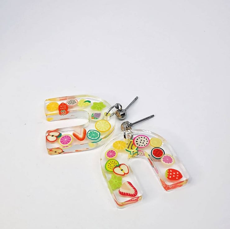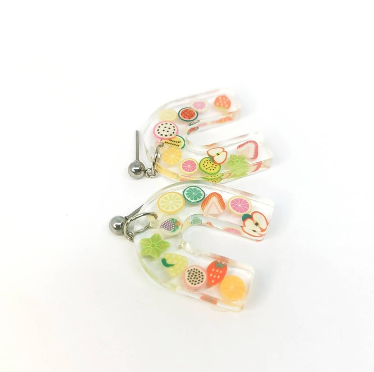 Fun fruit earrings made with resin and hypoallergenic steel.