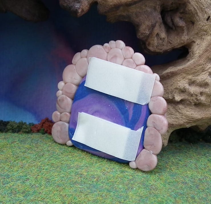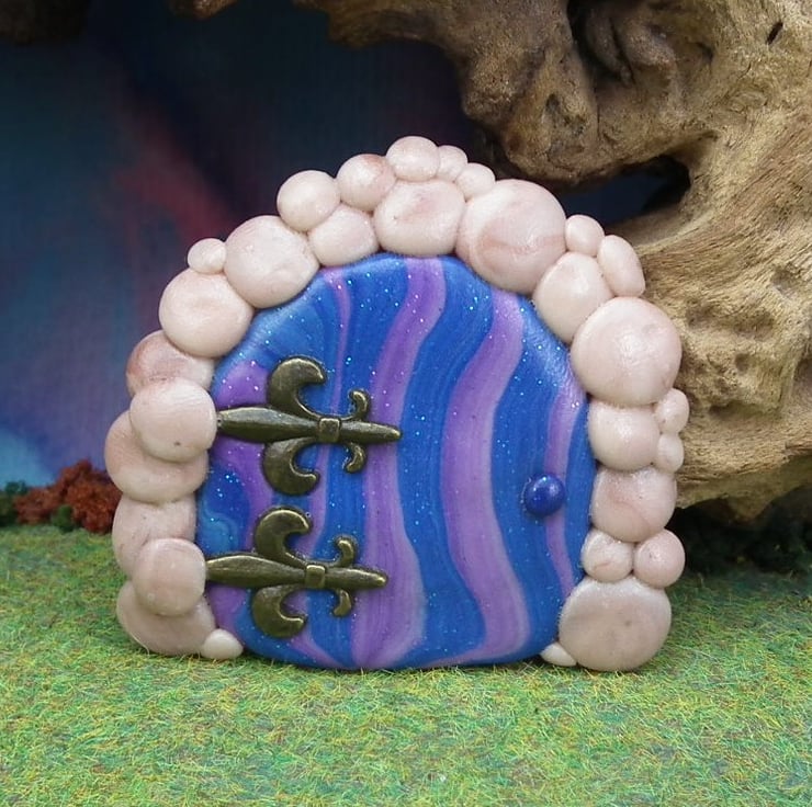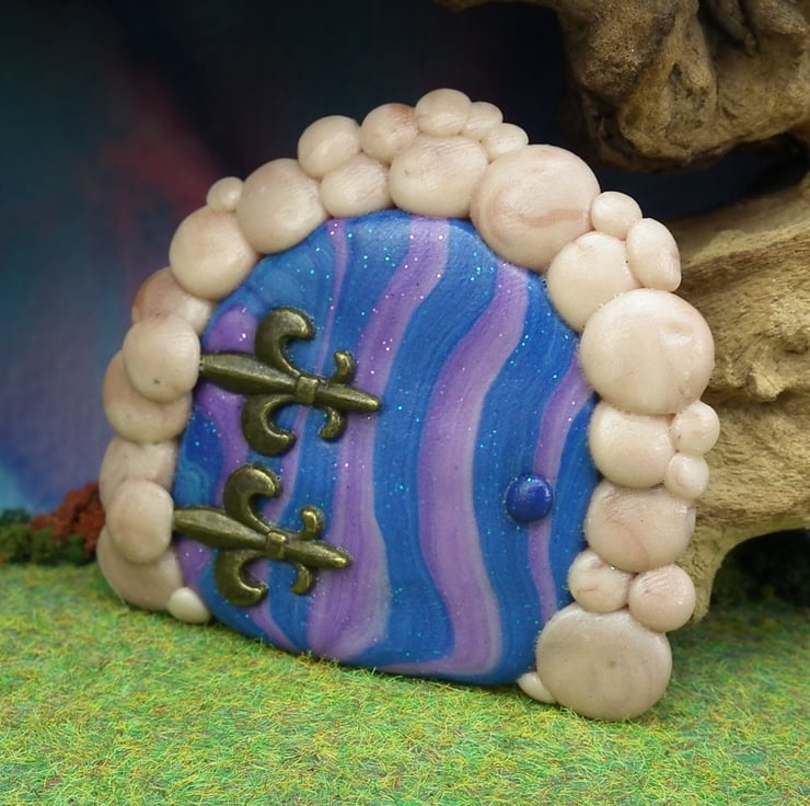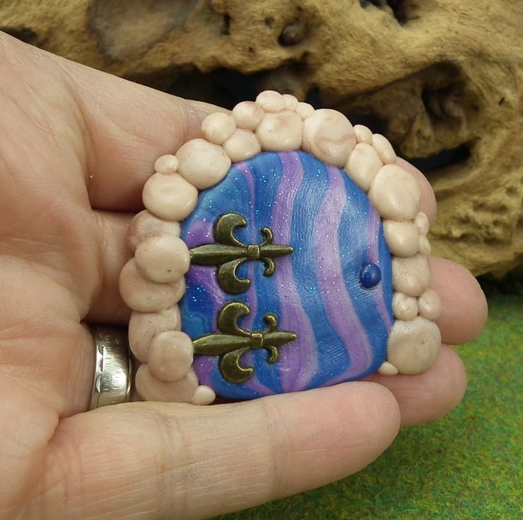 This is a 'one of a kind' creation having been entirely handmade without the use of moulds here at my studio on the Sussex Coast. Modelled with Prosculpt polymers, painted with heat set paints before sealing with lacquer, The door is two inches high and can be attached to any flat surface with the fixing pads on reverse. A smaller door for Gnomes who don't mind stooping to enter ...