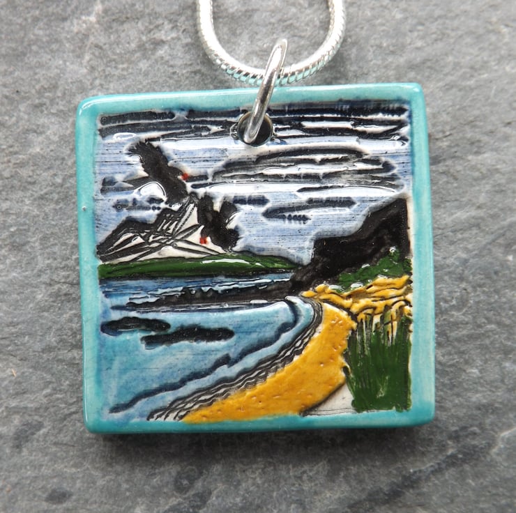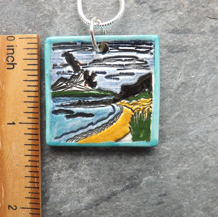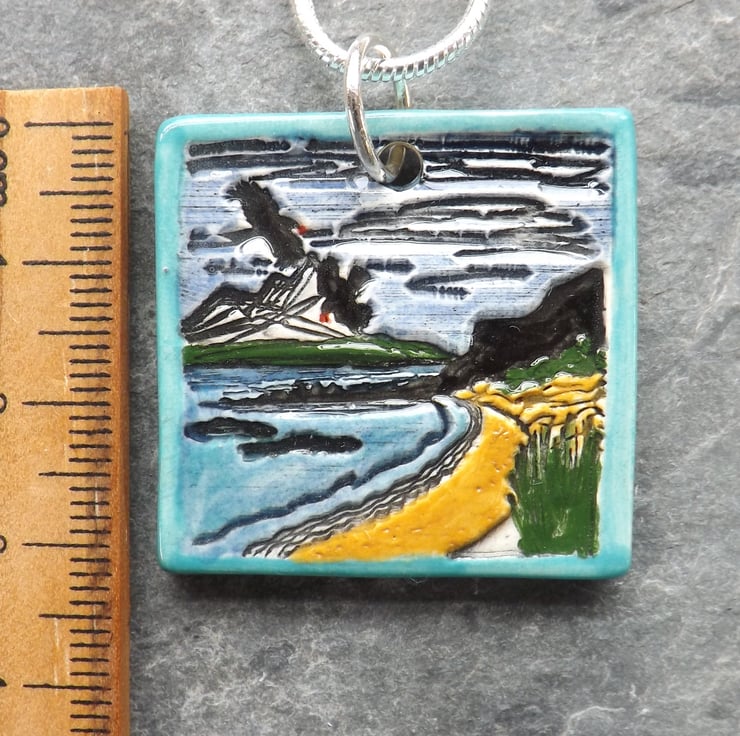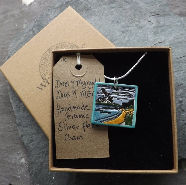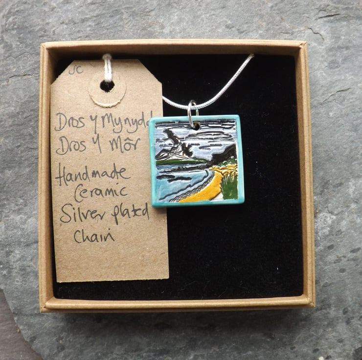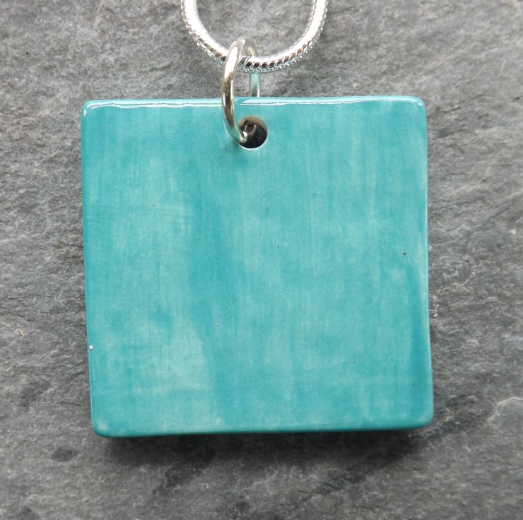 After forming my pendants from fine white clay, I imprint my design. When dry, I sand the back and sides of the pendants and round off the edges to ensure they are super smooth. They then have their first firing. Next I paint them using under-glazes and apply a transparent glaze before firing again to earthenware. Being glazed all over they are smooth against the skin whilst retaining the texture of the imprinted design. The result is a pleasantly tactile item.