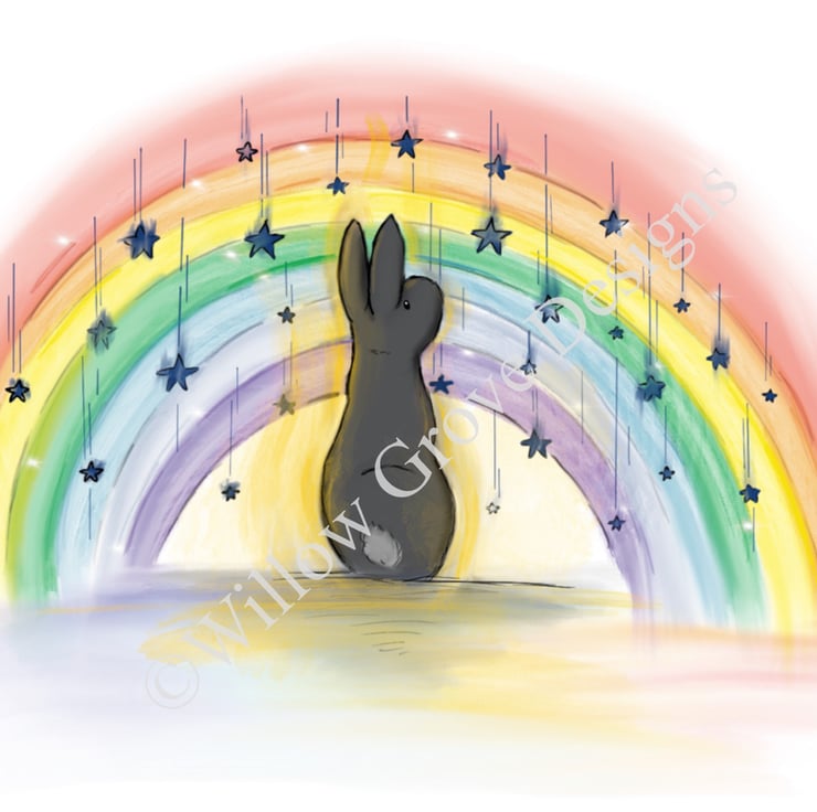 Losing a pet is one of the hardest things we can face in this life. I designed this art whilst thinking of past bunny friends and how their memory will live on. My hopes is this print can help another person feel loved at a difficult time