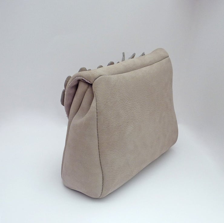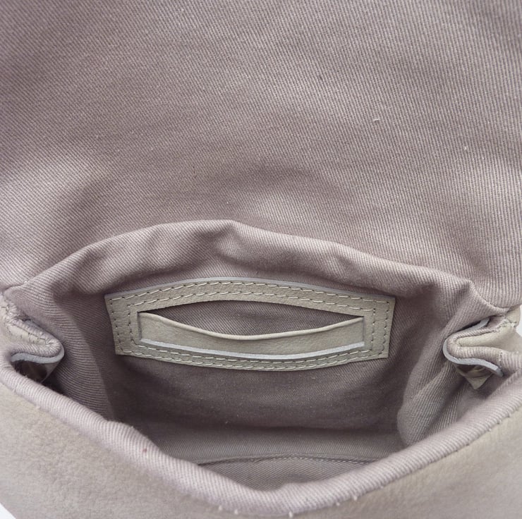 This clutch is made from soft buffalo nubuck with a cotton drill lining.