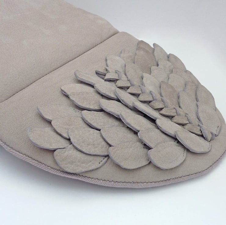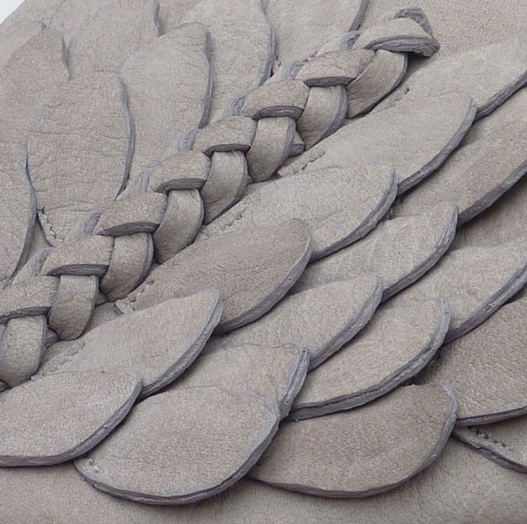I created this range with the thought of using textures and individual pieces of leather to create texture and a sense of movement. All my pieces take time to make but this one in particular as the leaf detailing was particularly intricate (and intense!).