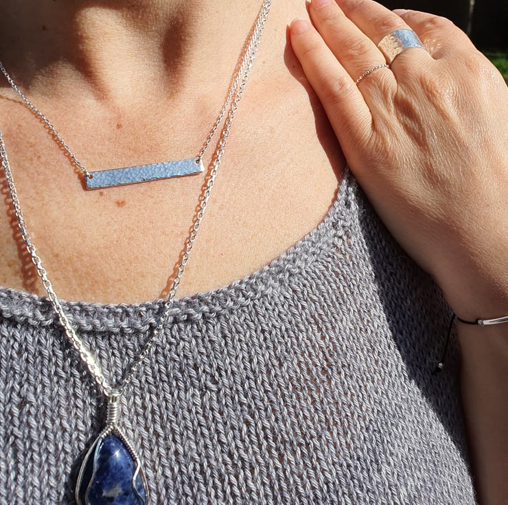 All of my jewellery is hammered, wire wrapped and soldered by hand and each piece is slightly different and unique. I use the best quality metals from bullion suppliers in Hatton Garden London and source gemstones from reputable and ethical suppliers.