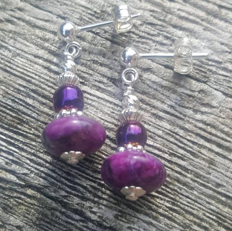 Purple drop earrings. Purple Jasper and sterling silver earrings. Gemstone and s