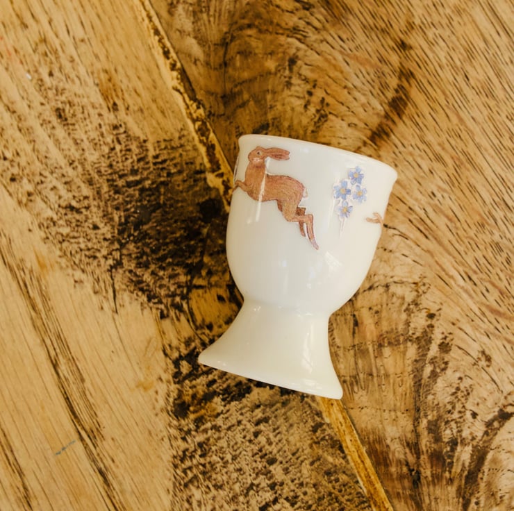 The hare leaps around the egg cup, and we all know Easter bunnies and Easter hares delight children, bringing this playful egg cup to life.