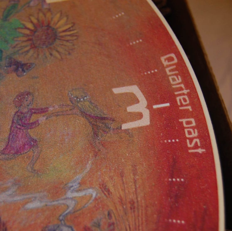 You can enjoy the beautiful rainbow colours on this teaching clock as your child investigates the illustrations. The clock travels through a variety of activities, resonating with a childs rhythm of the day.