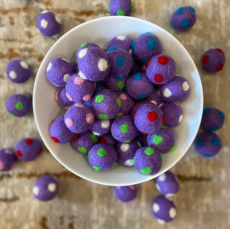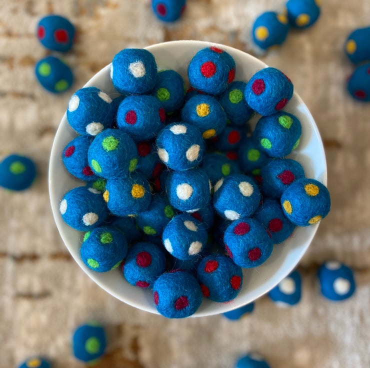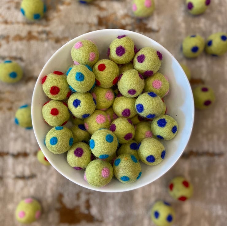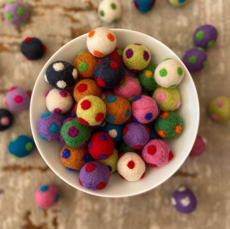 Selection of 9 different colours of these beautiful polkadot felt balls, all balls are approx 2.5cm in size and are all individually handmade.