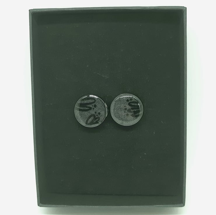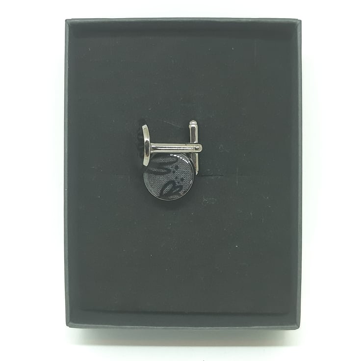 Handmade brass cufflinks - black floral design. Gunmetal tone.