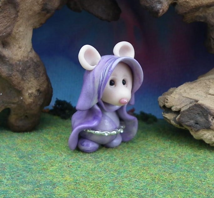 This is a 'one of a kind' creation; entirely handmade without the use of moulds here at my studio on the Sussex Coast. Modelled with Prosculpt polymers, painted with heat set paints before sealing with lacquer, Helga has sparkling black onyx eyes and is one and a half inches tall.