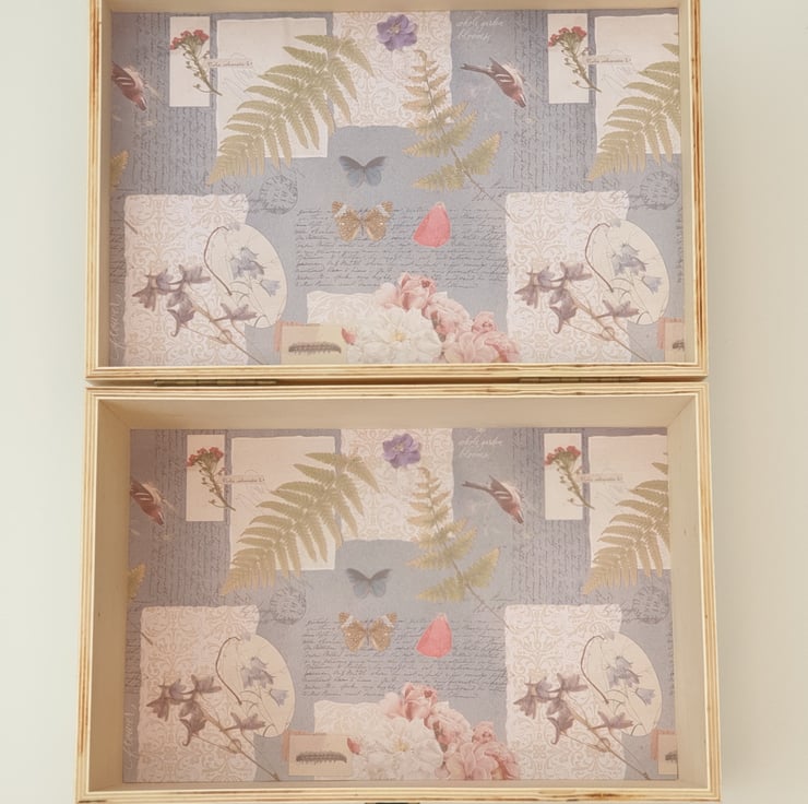 Beautifully decorative large wooden storage box with metal clasp perfect for storing keepsakes or any number of treasures. The box has been lovingly decorated using the art of pyrography with pretty lillies, butterflies and bees design. Each side of the box has some decoration apart from the bottom. The box exterior has then been finished with several coats of satin varnish for added protection. The interior of the box has been lined with pretty paper making the box beautiful inside and out.
