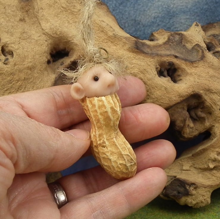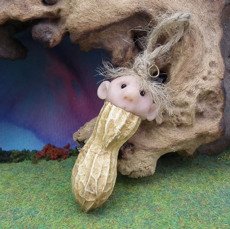 Prudi has been sculpted with my own blend of polymers. She is a 'one of a kind' creation having been entirely handmade as always without the use of moulds here at my studio in the heart of the Sussex countryside. She has been gently blushed. Prudi is just two inches long in her shell and would make a unique and precious addition to your collection. She is not removable from the shell and has been designed to hang by her hessian cord.