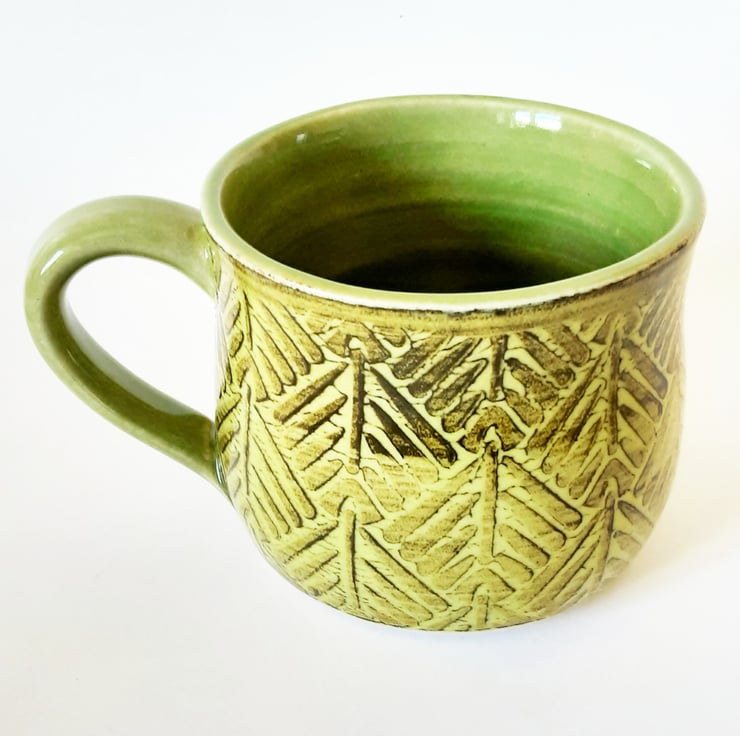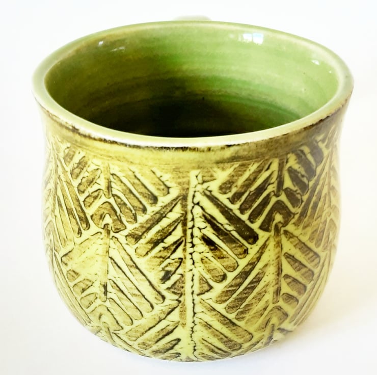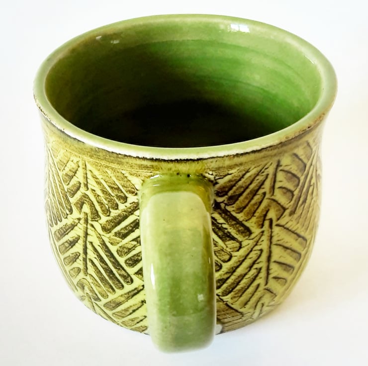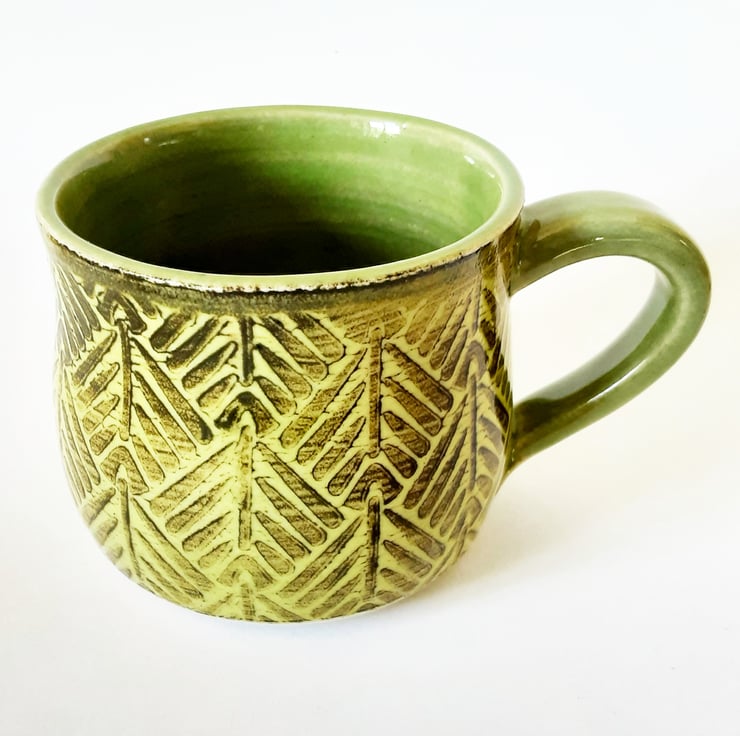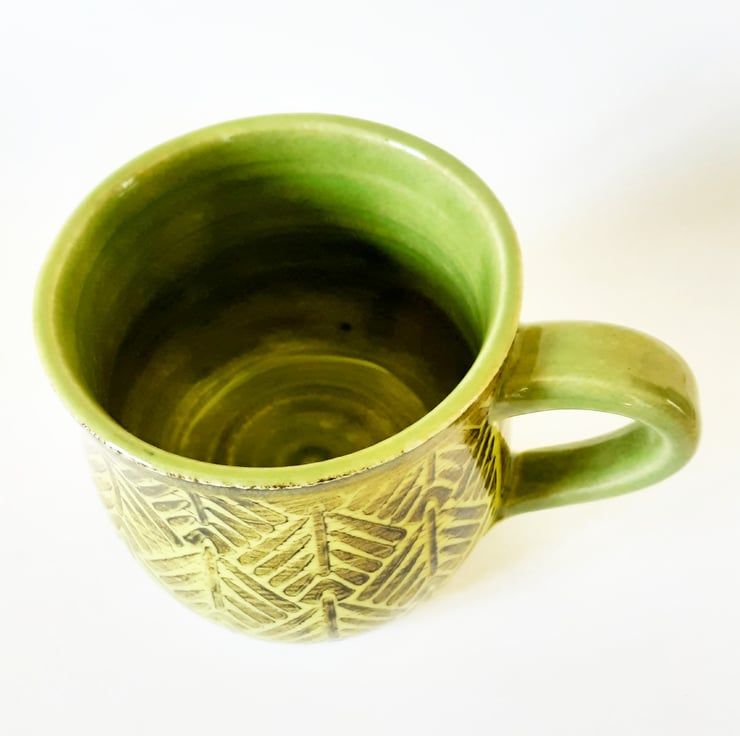 Glazed in green glazes with a surface pattern.