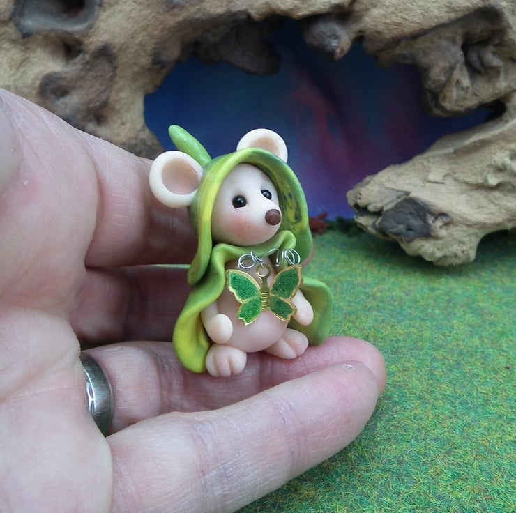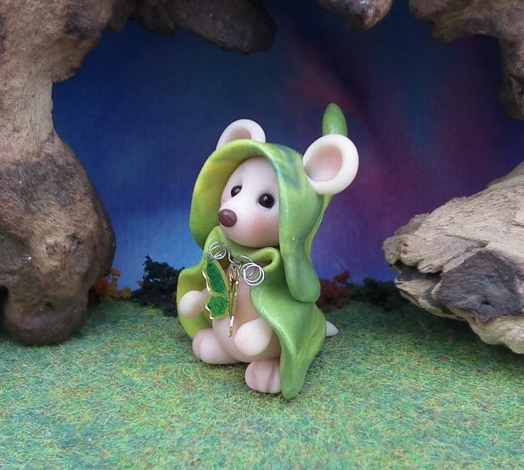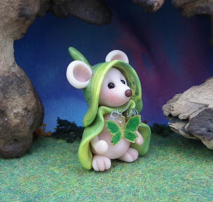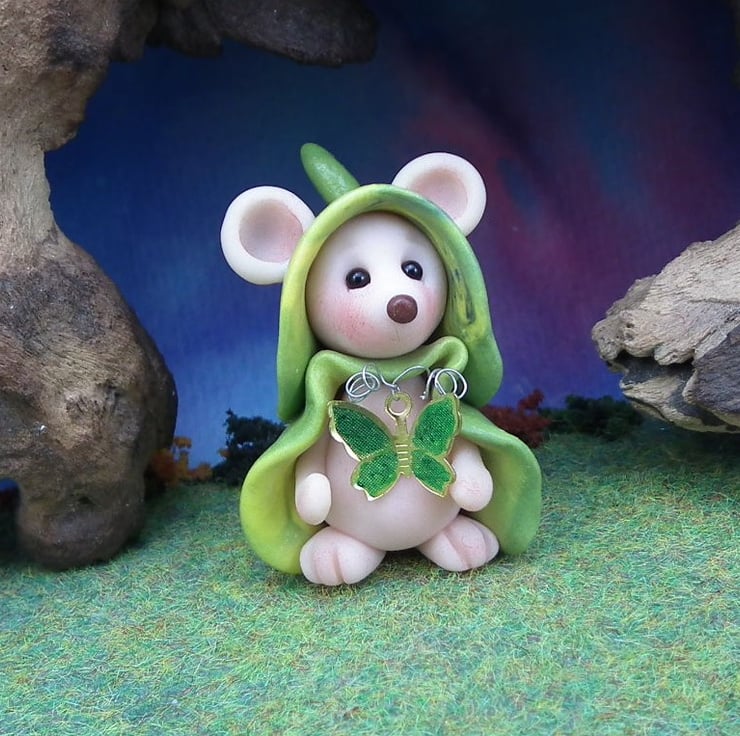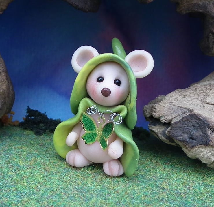 This is a 'one of a kind' creation; entirely handmade without the use of moulds here at my studio on the Sussex Coast. Modelled with Prosculpt polymers, painted with heat set paints before sealing with lacquer, Stella has sparkling black onyx eyes and is one and a half inches tall.