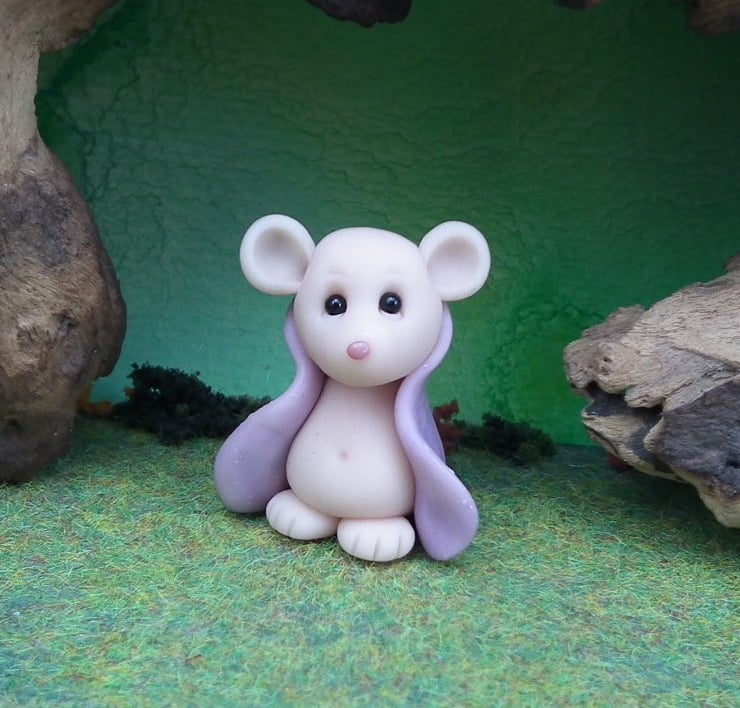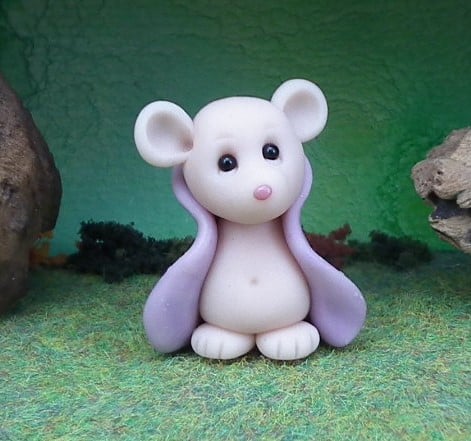 This is a 'one of a kind' creation; entirely handmade without the use of moulds here at my studio on the Sussex Coast. Modelled with Prosculpt polymers, painted with heat set paints before sealing with lacquer, Bea has sparkling black onyx eyes and is one and a half inches tall.