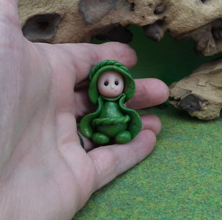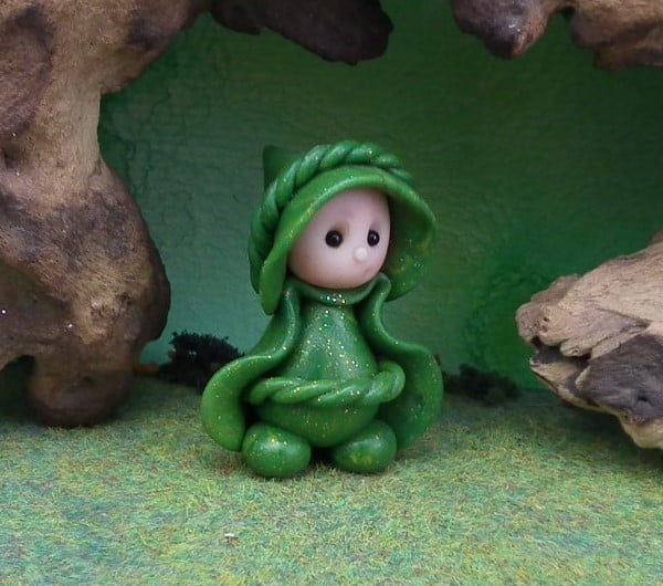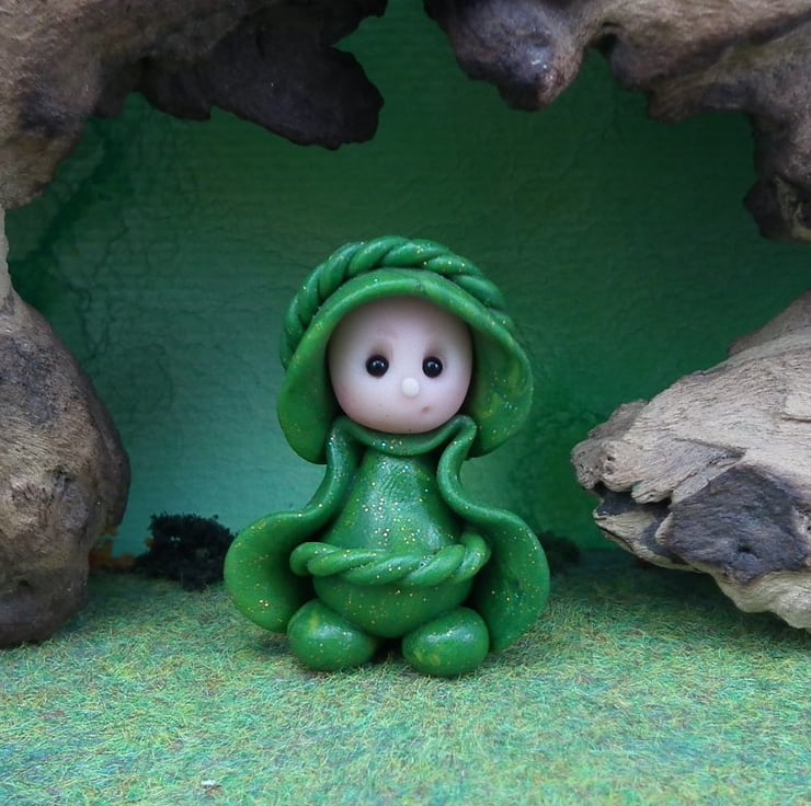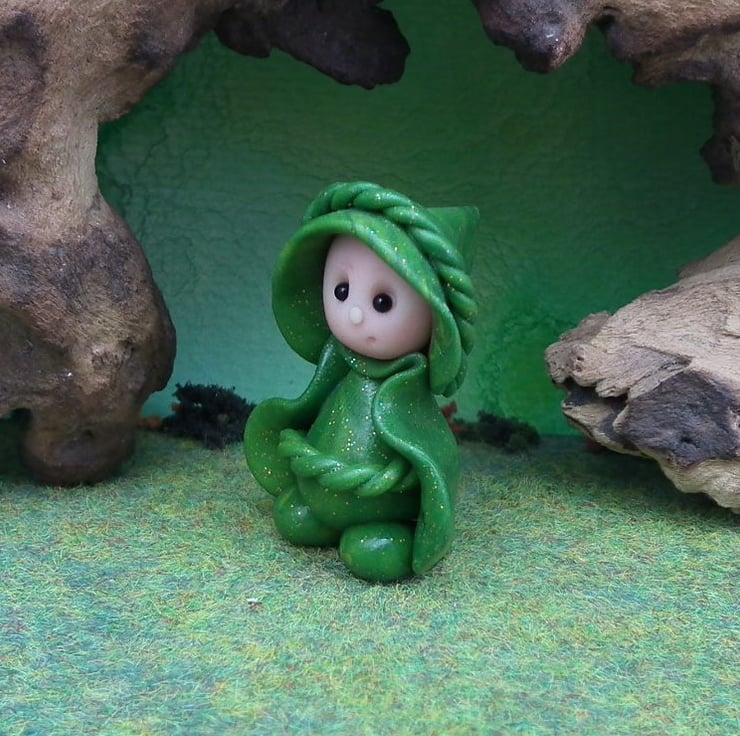 This is a 'one of a kind' creation having been entirely handmade without the use of moulds here at my studio on the Sussex Coast. Modelled with Prosculpt polymers, painted with heat set paints before sealing with lacquer, Marcus has sparkling black onyx eyes and woodland green robes. Marcus the Gnome is just one and a half inches tall.