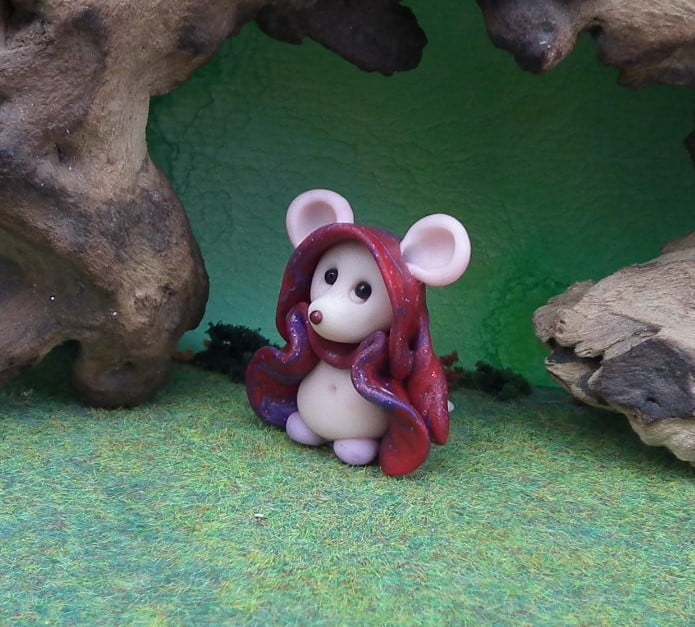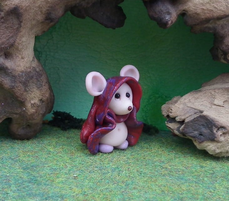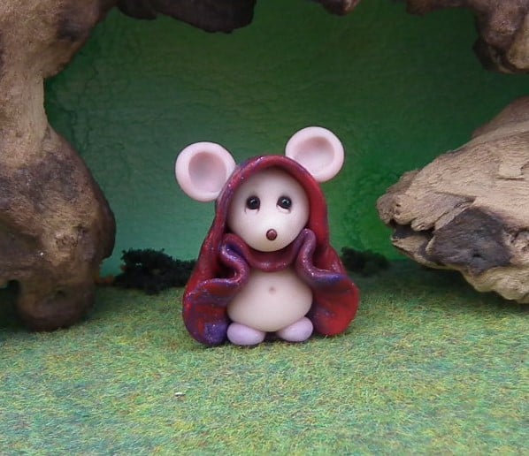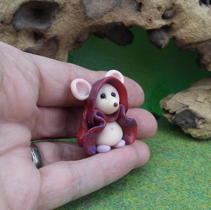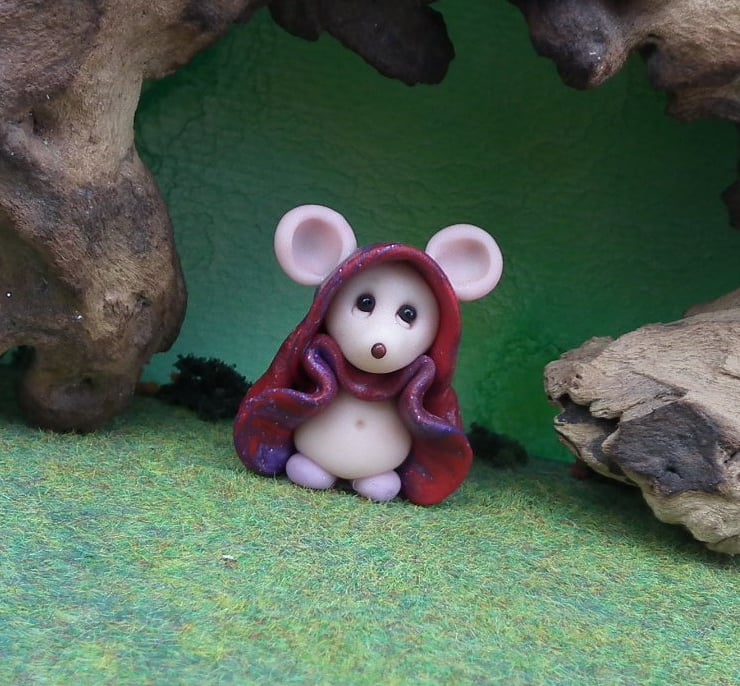 This is a 'one of a kind' creation; entirely handmade without the use of moulds here at my studio on the Sussex Coast. Modelled with Prosculpt polymers, painted with heat set paints before sealing with lacquer, Missie has sparkling black onyx eyes and is one and a half inches tall.