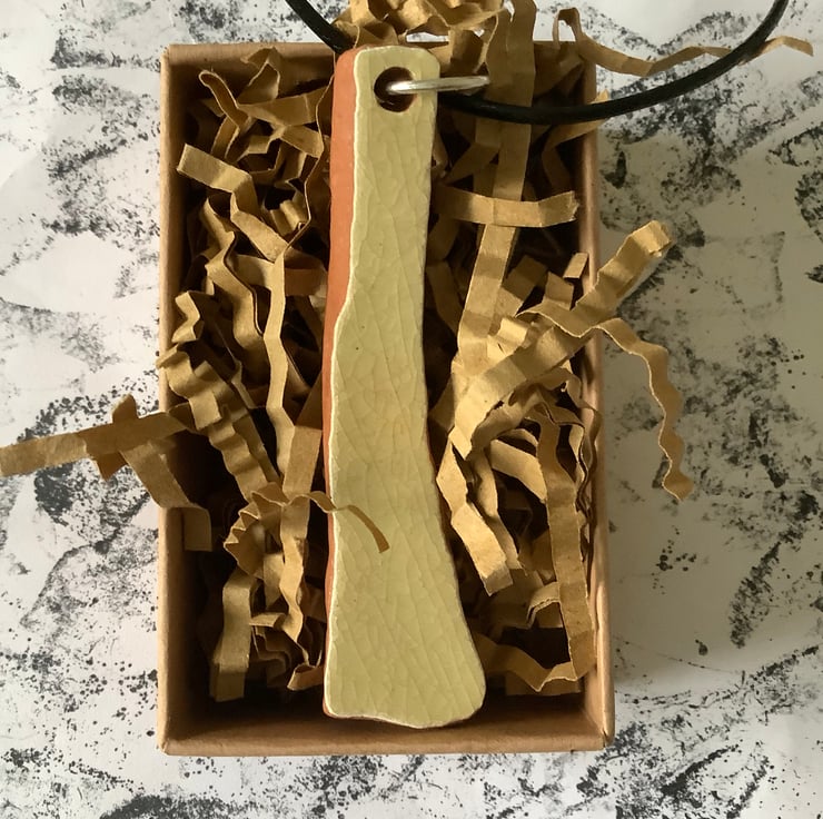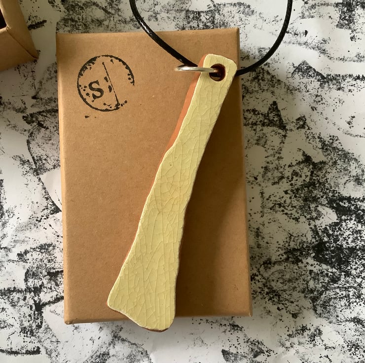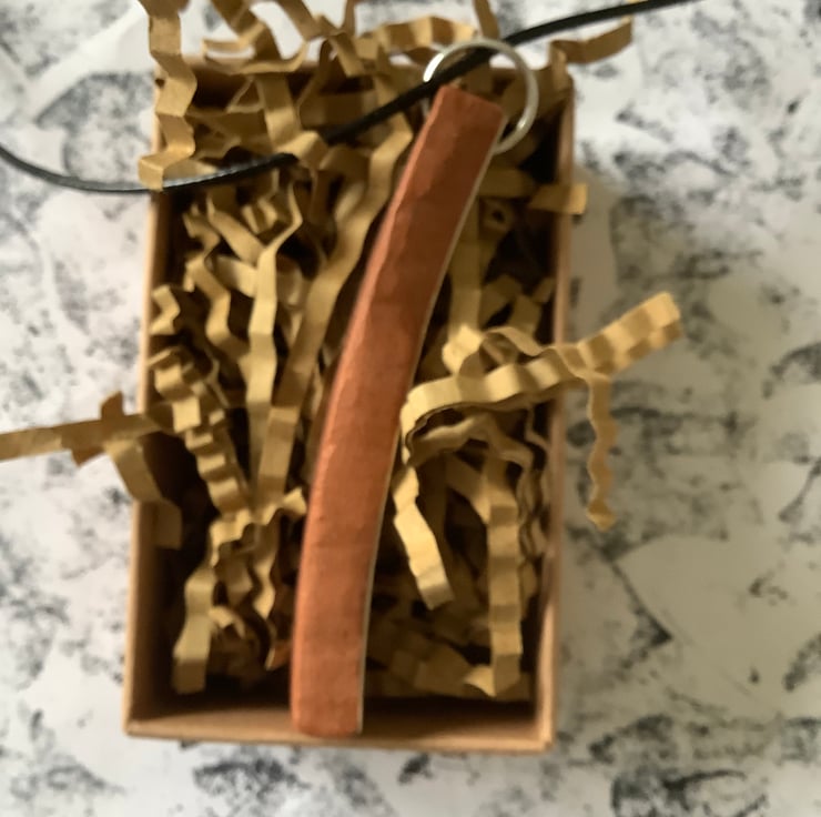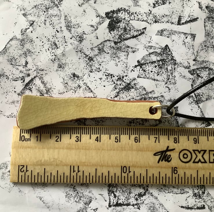 There is something calming about this shape, I have no idea why its just my feeling however, I did ask a friend what words would you use to describe this pendant and she said calm and mythical. At first I decided to just have it hanging on twine as a wall decoration but the shape and length makes for a lovely pendant.