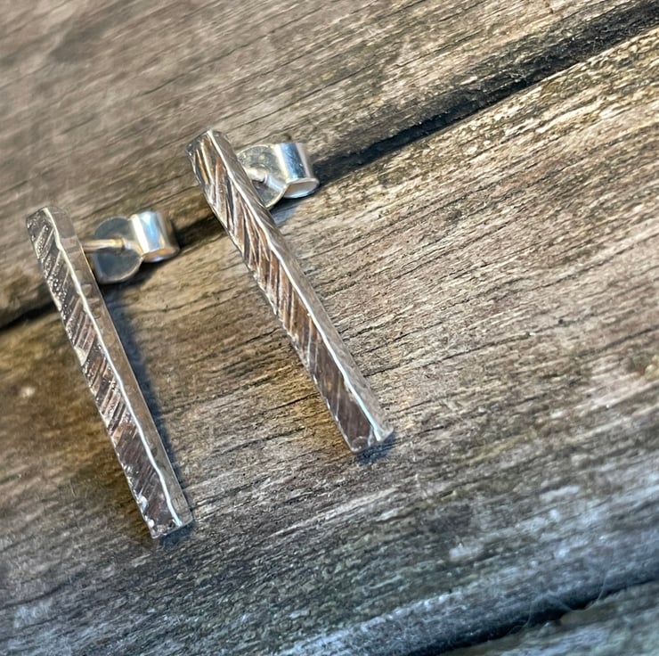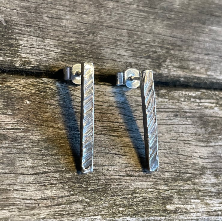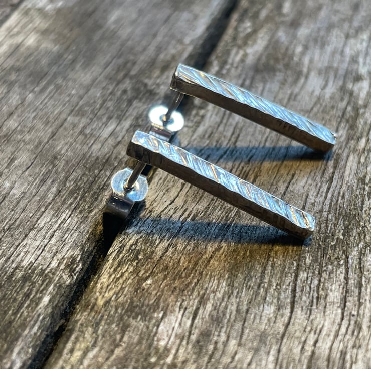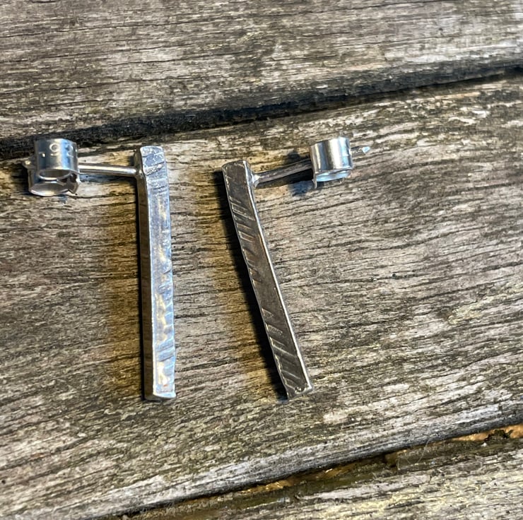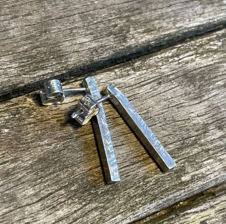 Sterling silver earrings made with a hammered texture on 2mm square wire with sterling silver butterfly backs.