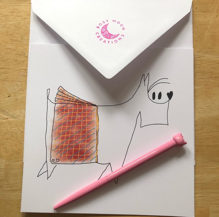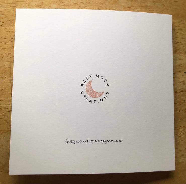 The card measures approximately 17x17cm, is blank on the inside for your own very special message and comes with an envelope.