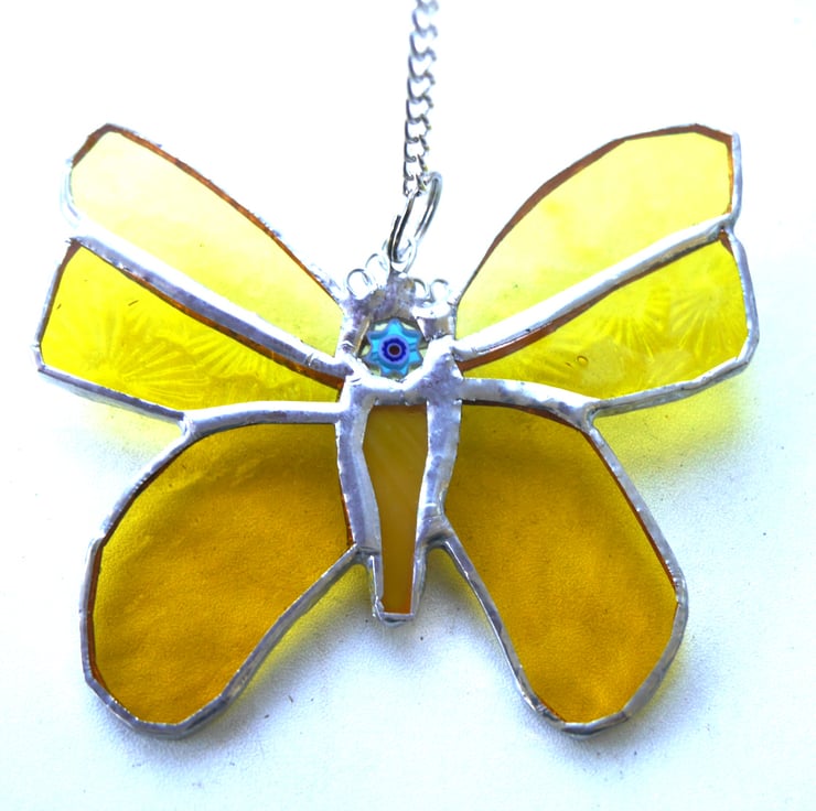 It is a very pretty little butterfly made of lovely shiny shades of bright yellow glass.