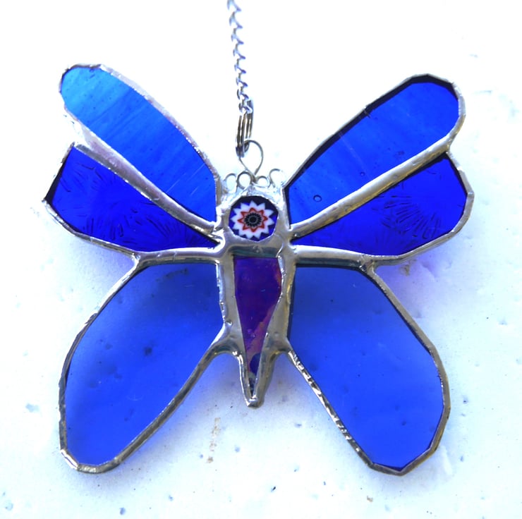 It is a very pretty little butterfly made of 3 lovely types and shiny shades of bright blue glass.