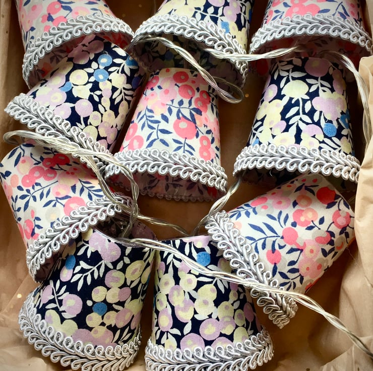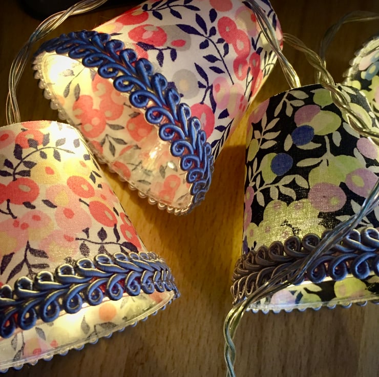 I also do custom lights to order, and I can even use your own special fabric, so please contact me if you would like a particular colour combination to fit with your decor, or have a specific fabric in mind. Just remember that these are mini lampshades, so the prints I use have to be mini too!