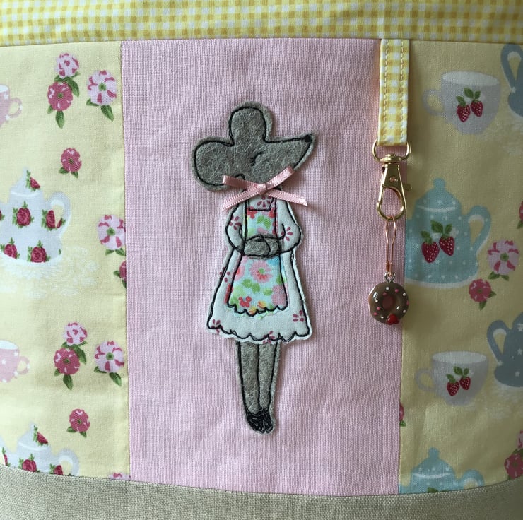 The bag has a box base so it stands alone and comes with a cute donut stitch marker.