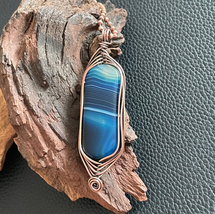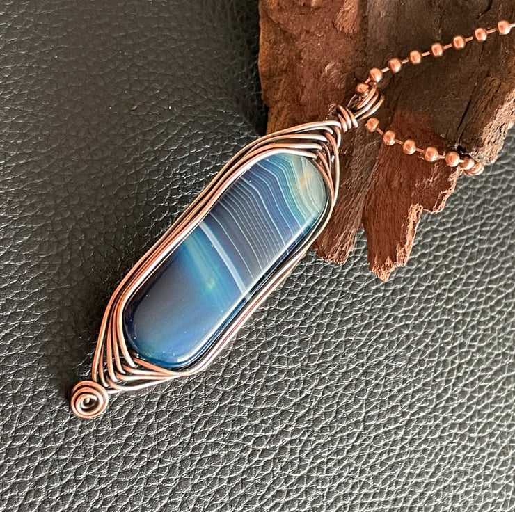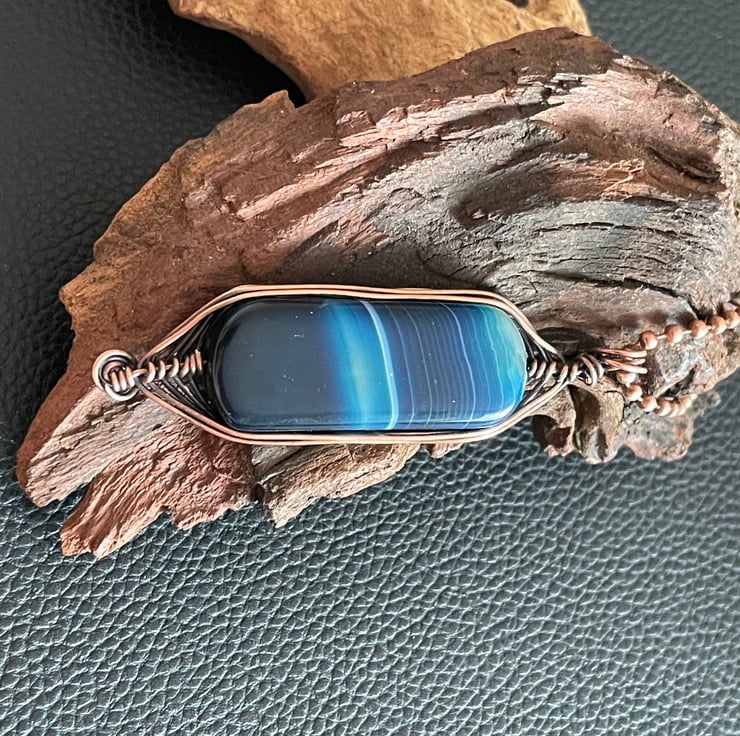 BLUE BANDED AGATE - (description sourced from thepsychictree) Emotional Healing Properties - Promoting self-acceptance and confidence, agate overcomes negativity and harshness of the heart, by healing anger, encouraging love, and giving the courage to start over. It is a very useful stone for any kind of trauma. Spiritual Properties - This stone encourages a quiet contemplation of one's life experiences that lead to spiritual growth and inner stability. Legend has it that the wearing of agate was believed to be a cure for insomnia and was thought to induce pleasant dreams. Agate is said to have the power to protect the wearer from danger.