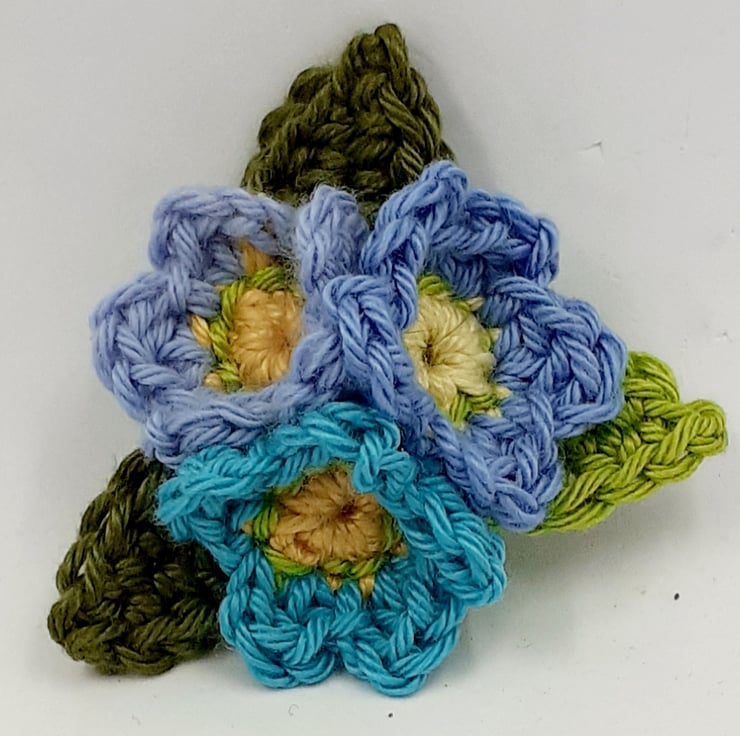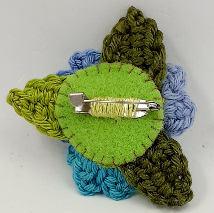 This sweet little brooch is crocheted in cotton and backed with felt for stability. The metal brooch finding is securely sewn to the back. The brooch measures approximately 6cm in diameter at its widest points. It is pinned to a gift tag which reads 'With Love, ' although I am very happy to exchange this tag for one with wording of your choice. A keepsake gift and greeting in one, perfect for many an occasion!