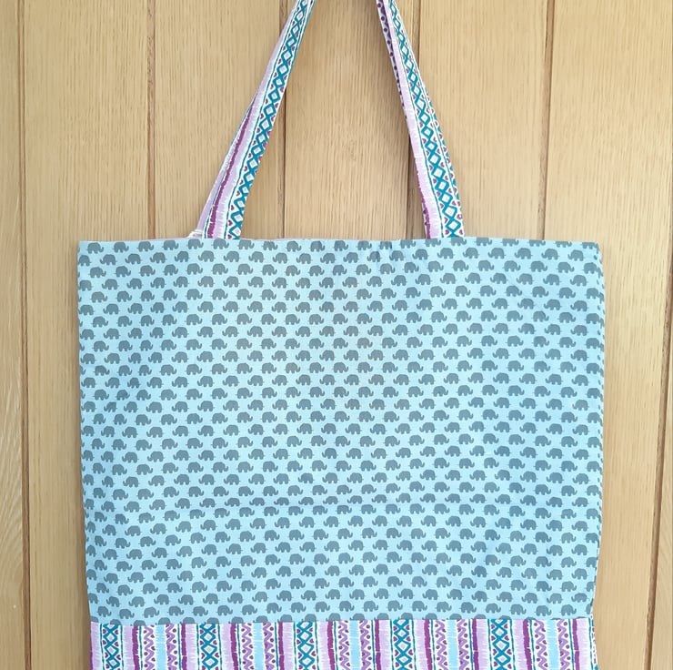 Lightweight, large cotton tote bag - fully lined. Approximate size 16inx15x4in - handle 9in.
