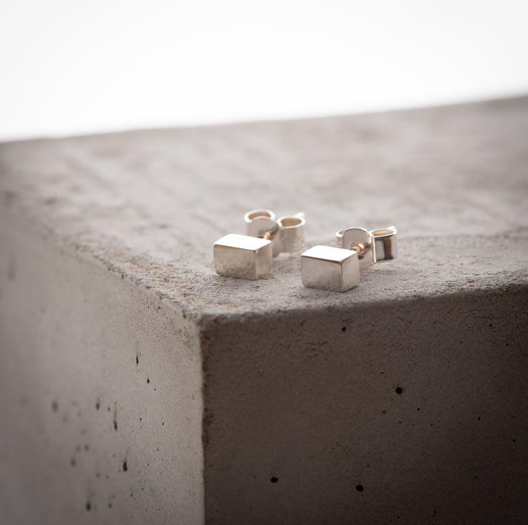 These earrings are handmade to order from sterling silver. The stud and scroll are also made from sterling silver.
