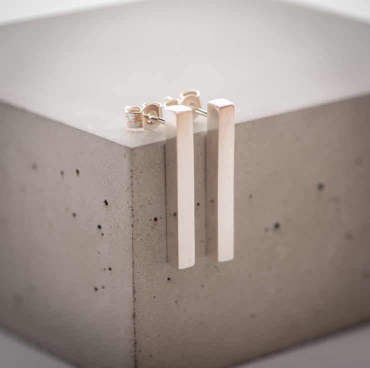 These earrings are handmade to order from eco-silver. This is sterling silver that has been 100% recycled from old jewellery, giftware and electronics. The stud and scroll are also sterling silver.