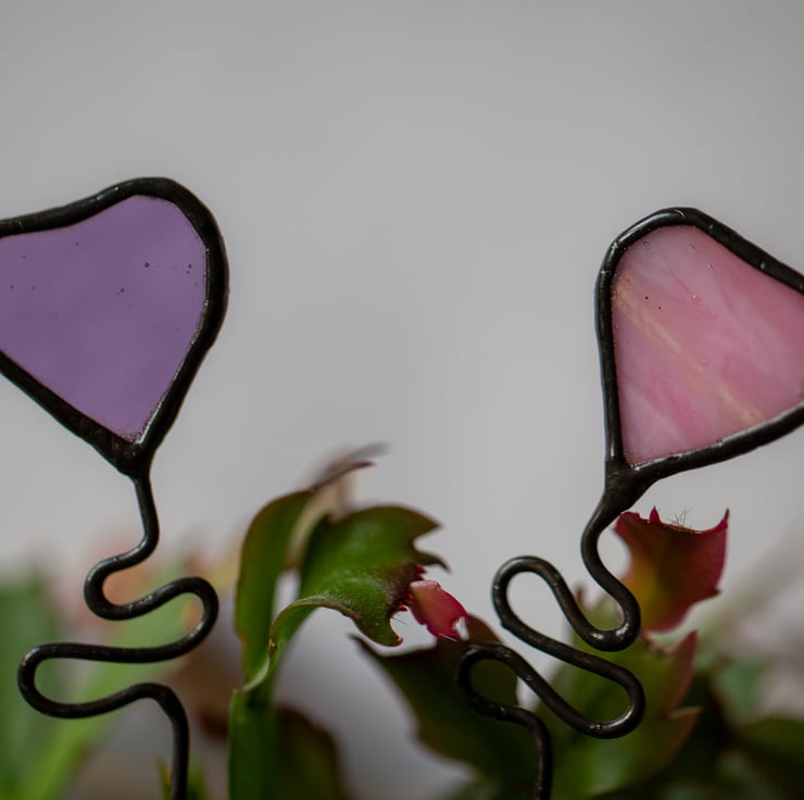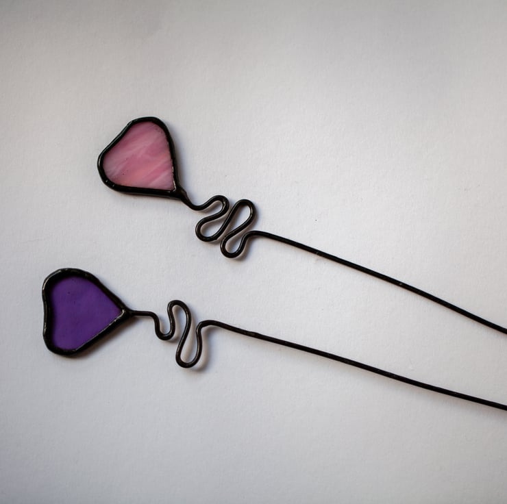 Add a nice accent and style your plants! This little plant stake will definitely add some colour. Made of real stained glass and copper wire with traditional Tiffany technique. Simply push the stake into soil in the pot.